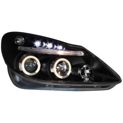 Φανάρια εμπρός led angel eyes για Peugeot 207 (2006-2009) , μαύρα , με λάμπες (Η1) – σετ 2τμχ.