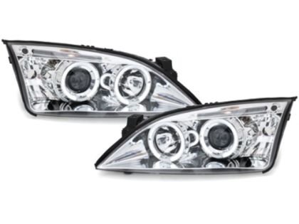Φανάρια εμπρός angel eyes για Ford Mondeo (2000-2007) – chrome , με λάμπες (Η1) – σετ 2τμχ.