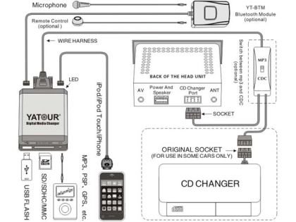 <div>1. After finishing installation for Yatour YT-M05 or YT-M06 or YT-M07, connect YT-BTM to bluetooth port of YT-M05 or YT-M06 or YT-M07. Mount the YT-BTM module away from metal structures as close to the phone as possible.</div>