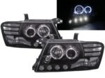 Φανάρια εμπρός angel eyes για Mitsubishi Pajero (2001-2006) – μαύρα , με λάμπες (Η1) – σετ 2τμχ.
