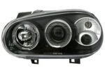 Φανάρια εμπρός angel eyes για Vw Golf IV – μαύρα , με λάμπες (Η1) – σετ 2τμχ.