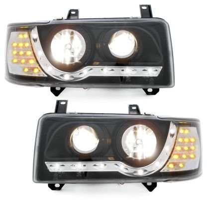 Φανάρια εμπρός led για Vw Transporter T4 (1990-2003) , μαύρα , με λάμπες (Η1) – σετ 2τμχ.