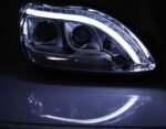 Φανάρια εμπρός led lightbar design για Mercedes W 220 S-Class (1998-2005) – μαύρα , με λάμπες (Η1) – σετ 2τμχ.