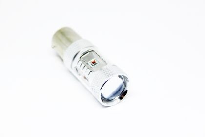 Led λάμπα BA15S με 6 x 5W CREE led και προτζέκτορα διπλού φωτισμού κόκκινη – 1τμχ.