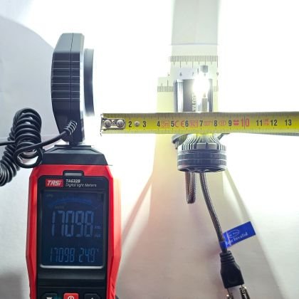 Ένταση φωτεινότητας: 170.000 lux μετρημένη στα 7 cm. από την πηγή του λαμπτήρα (για σύγκριση λαμπτήρων αλογόνου, η μετρούμενη ισχύς στα 7 cm από την πηγή είναι 10700 lux, δηλαδή 15 φορές μεγαλύτερη. Στις φωτογραφίες, μπορείτε να δείτε τις πραγματικές μετρήσεις και των δύο τύπων λαμπτήρων από μετρητή lux μοντέλο TA632B, με μέγιστο όριο καταγραφής 200.000 lux. Αν η τιμή της μέτρησης είναι πάνω από 99.999, τότε εμφανίζεται μια ένδειξη "x10"στην οθόνη που σημαίνει ότι αν η μέτρηση είναι 155.000 lux, η οθόνη θα δείχνει 15.500 και θα ανάψει η ένδειξη "x10".)</p>