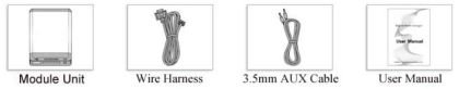 <p>Το σετ περιλαμβάνει :την κύρια συσκευή , καλώδιο σύνδεσης και καλώδιο ήχου 3.5 mm για aux-in και οδηγίες εγκατάστασης.</p>