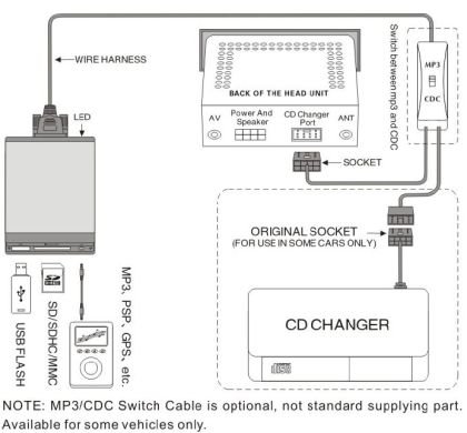 <p>Αναπαράγει MP3/WMA μέσω του εργοστασιακού ηχοσυστήματος , μέσω της εισόδου του CD-Changer , ανάλογο του CD-Changer.</p>